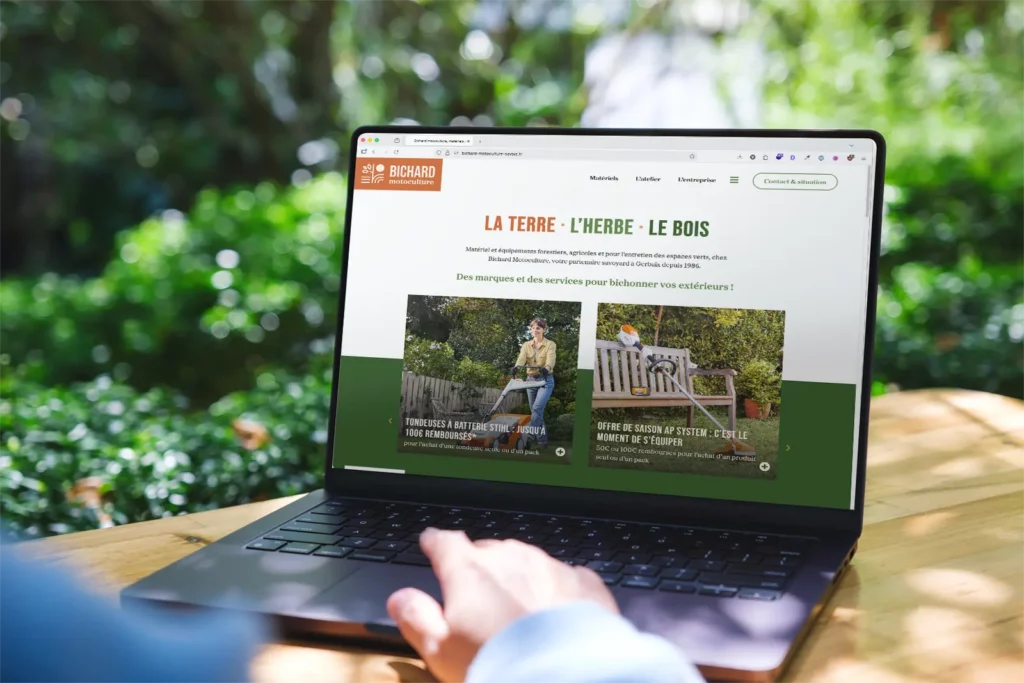 Installée à Gerbaix, en Avant Pays Savoyard, depuis 1986, cette entreprise familiale est une référence locale en matériel de motoculture : tronçonneuses, tondeuses, débroussailleuses, robots de tonte, motoculteurs… Elle sert aussi bien le particulier qui entretient son jardin que le professionnel des espaces verts ou l’agriculteur qui a besoin d’un partenaire technique fiable. Avec un atelier de réparation, des marques premium comme Stihl, et un service de livraison à domicile, Bichard Motoculture avait tout. Sauf une image à la hauteur.
