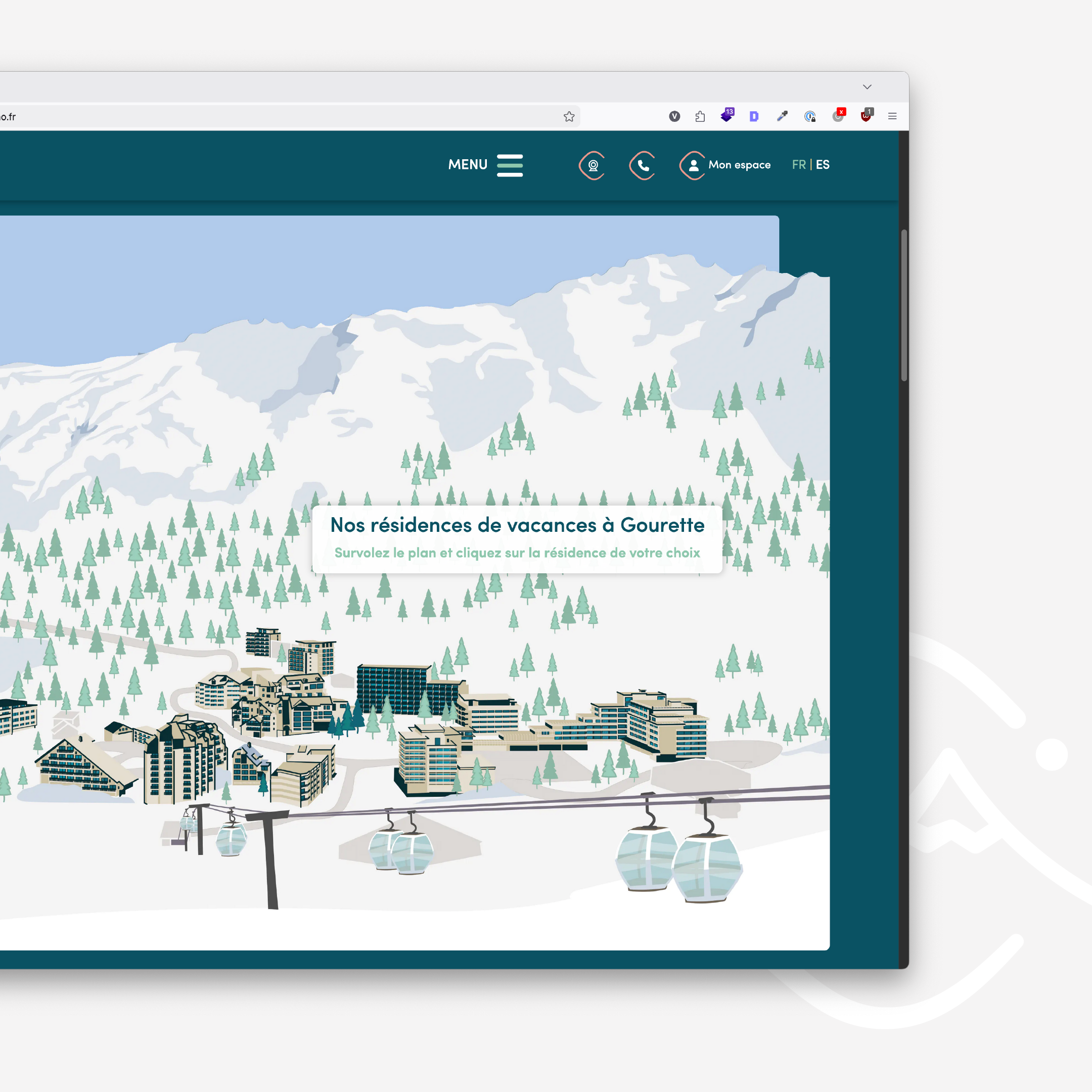 Interactive et sur-mesure, elle met en scène l’ensemble des résidences proposées par Gourette Immobilier, offrant une lecture immédiate de leur emplacement au sein de la station et permettant d’accéder en un clic aux disponibilités sur la résidence filtrée.